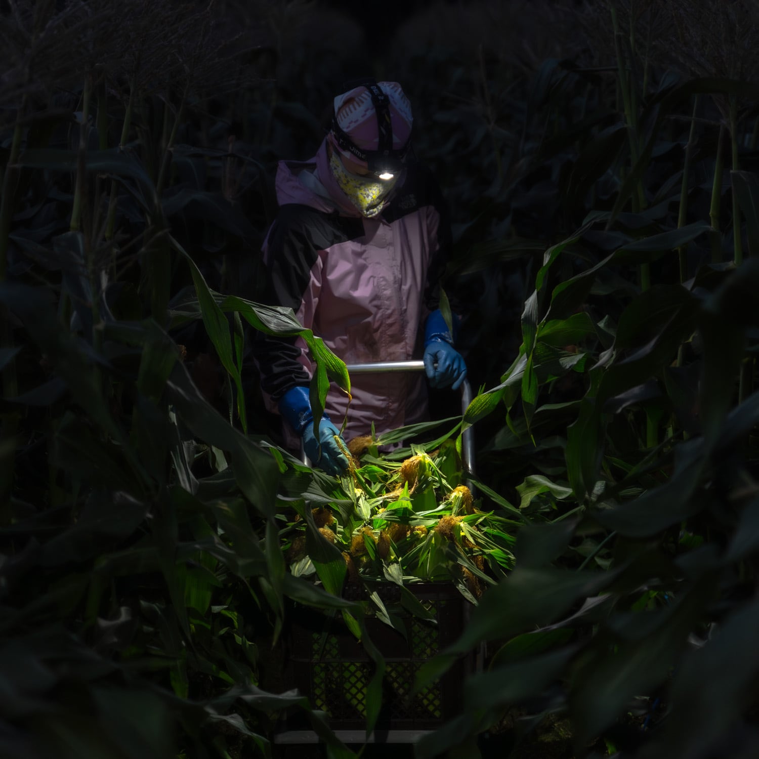 一日で最も甘くなる夜明け前に収穫するため「闇採り」と名付けました。自然の甘さを最大限に生かした、peakfarmの闇採りスイートコーンです。